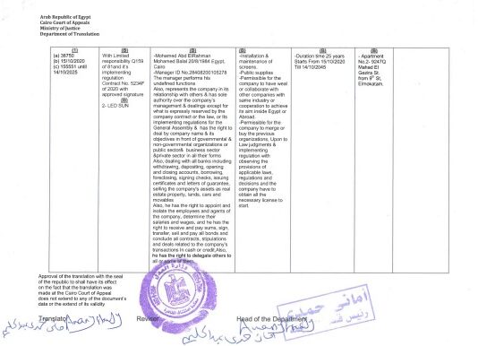 • Cairo Commercial Registry – Investment